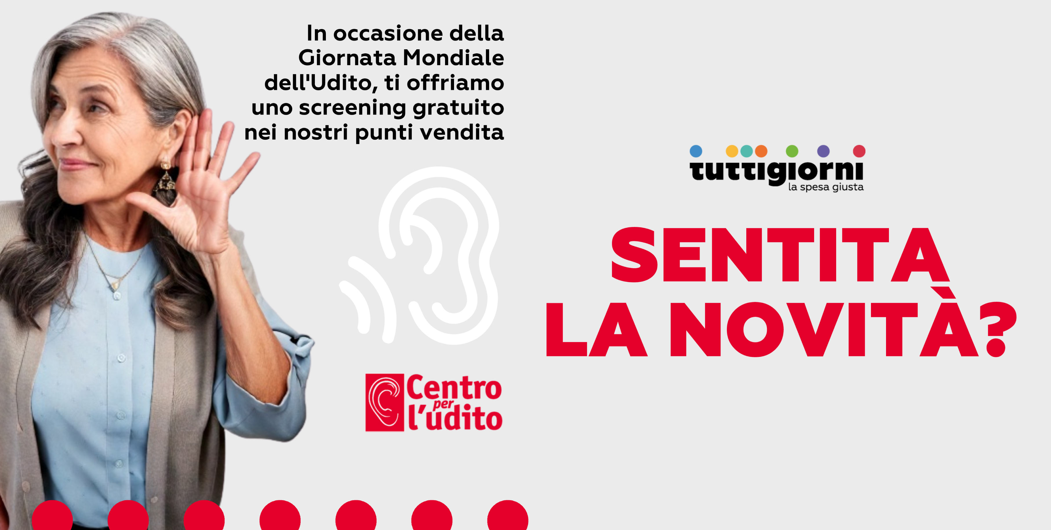 In occasione della Giornata Mondiale dell'Udito del 3 marzo, nei punti vendita Tuttigiorni di Cagliari Viale Poetto, Sassari Corso Pascoli e Tor San Lorenzo Viale Marino, è stata organizzata un'attività di screening gratuito dell'udito in collaborazione con l'Ente Nazionale Centro per l'Udito.