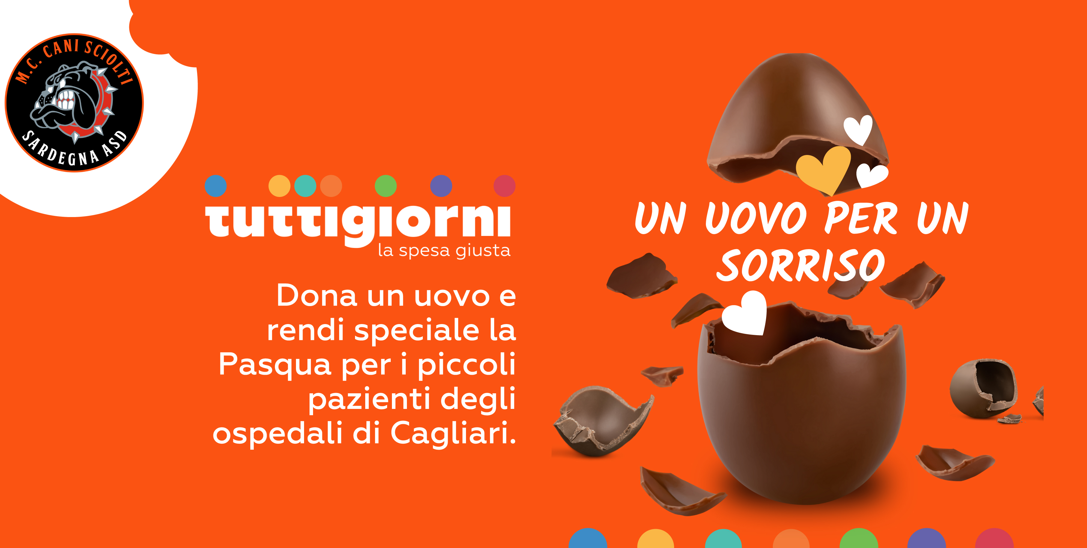 Sabato 5 aprile, in vista della Pasqua, il punto vendita Tuttigiorni del Poetto di Cagliari, in collaborazione con il Motoclub Cani Sciolti Sardegna, ha organizzato la raccolta solidale “Un uovo per un sorriso” con l'obiettivo di donare uova di Pasqua ai piccoli pazienti ricoverati in diversi ospedali della Sardegna, portando loro un momento di gioia.